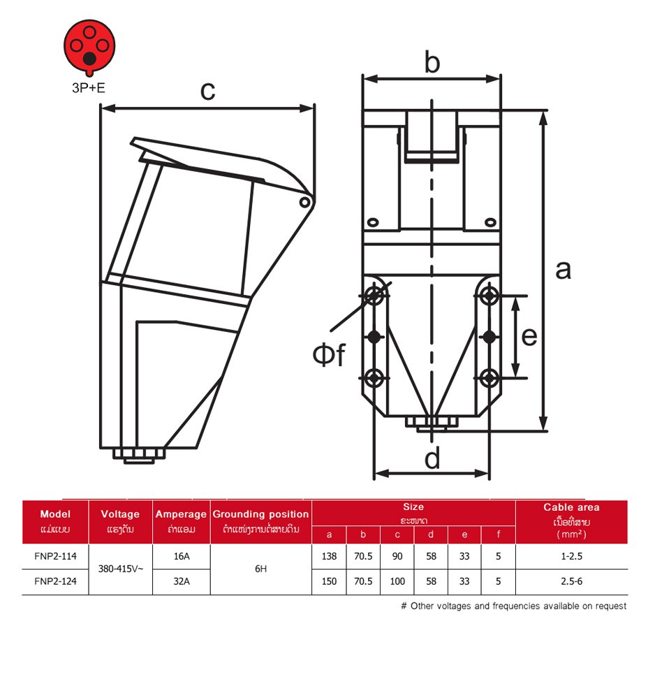 WALL SOCKET ,4P 16A/32A IP44 FNP2-114/124