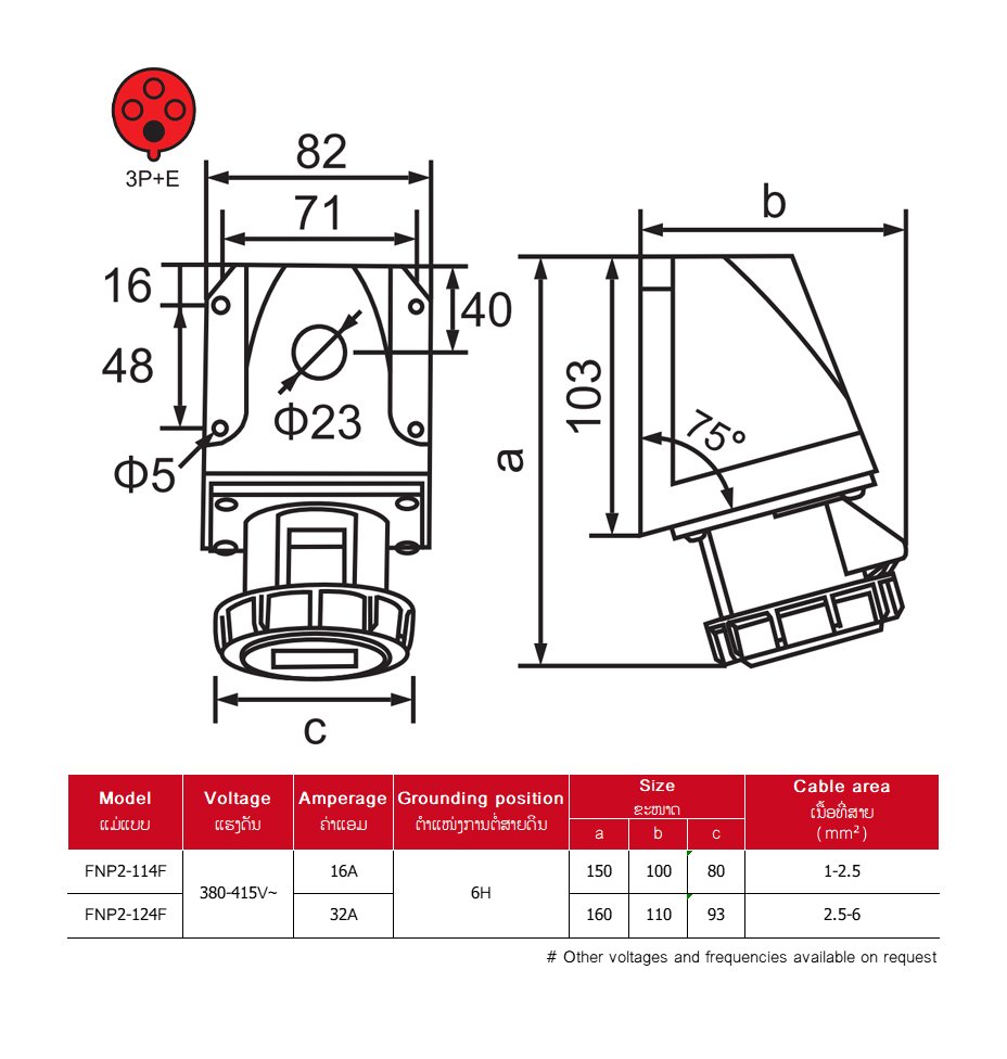 WALL SOCKET ,4P 16A/32A IP67 FNP2-114F/124F